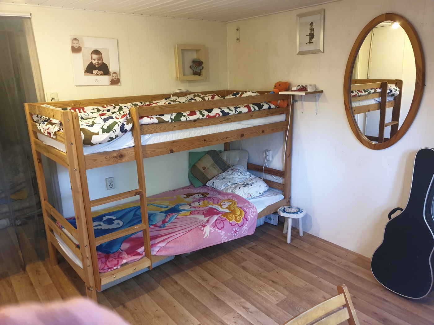 Er zijn 2 slaapkamers in het chalet en een vernieuwde badkamer met douche en toilet.